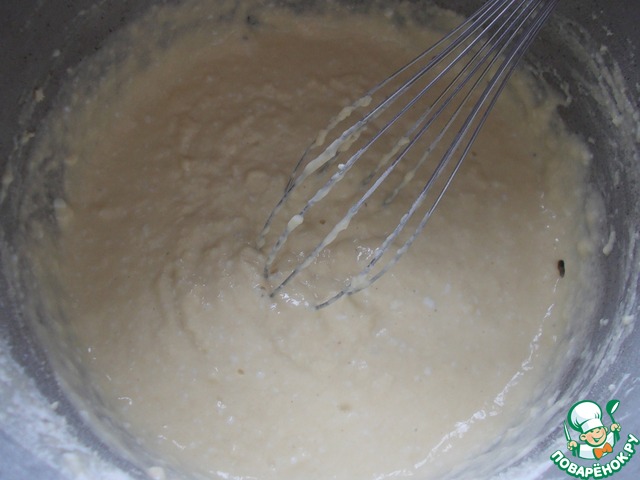 Добавляем муку и тщательно перемешиваем.
