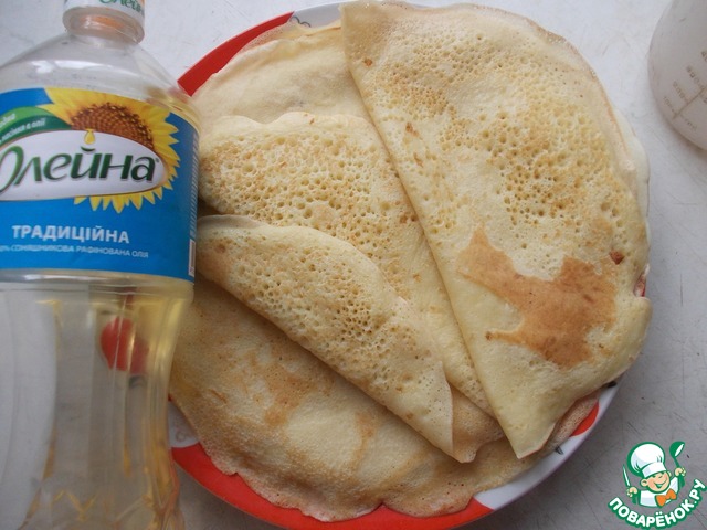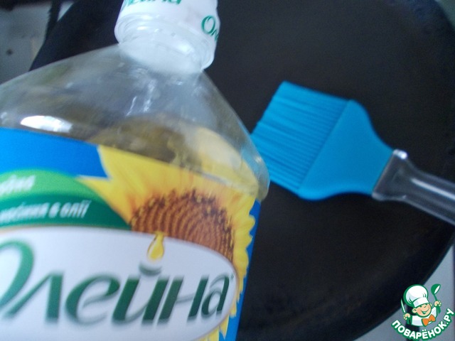 Перед каждым блином смазываем сковороду маслом Олейна.