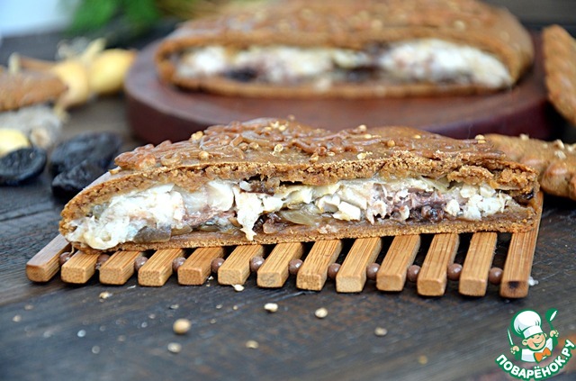 Переворачиваем аккуратно и перекладываем пирог в форму швом вниз.