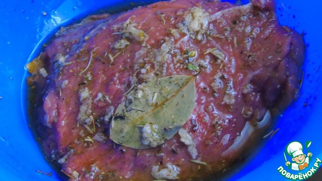 Он: Кусок телятины обмазал маринадом и сделал массаж))).. и ушел из кухни минимум на 12 часов))) оставив мариноваться мясо