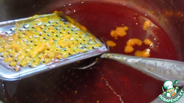 Она: добавляет к соусу мелко нарезанный перец чили и варит до легкого загустения, снимает с огня