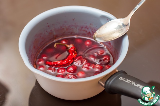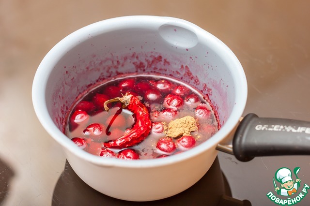 *Если вы захотите сделать вишню и соус более жгучим, то чили можете добавить еще на первом шаге.