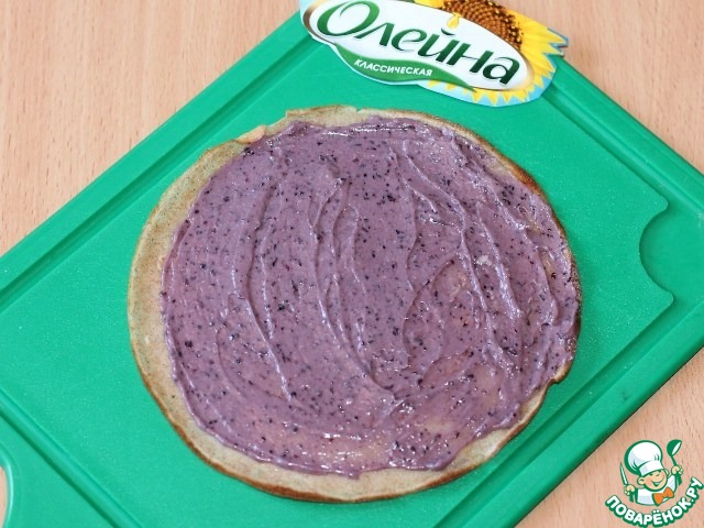 5. Положите черничную начинку на первый блинчик.