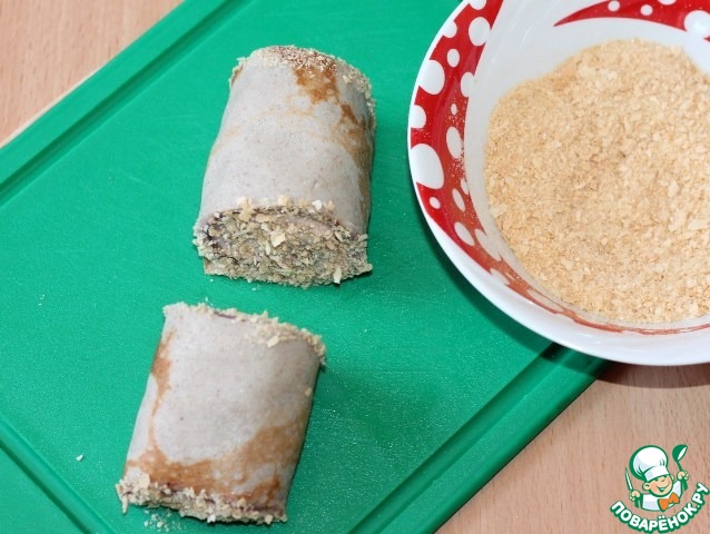 8. Сверните три блинчика трубочкой.