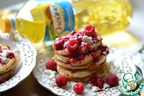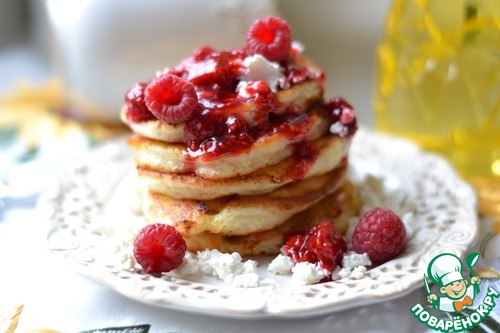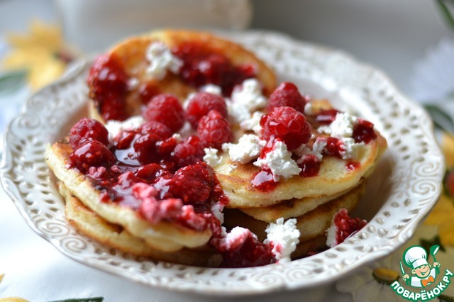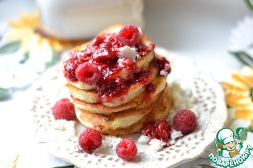 | Оладушки с творогом, а сверху ароматные сладкие малинки! Что может быть лучше? Только еще добавка... Угощайтесь! |
