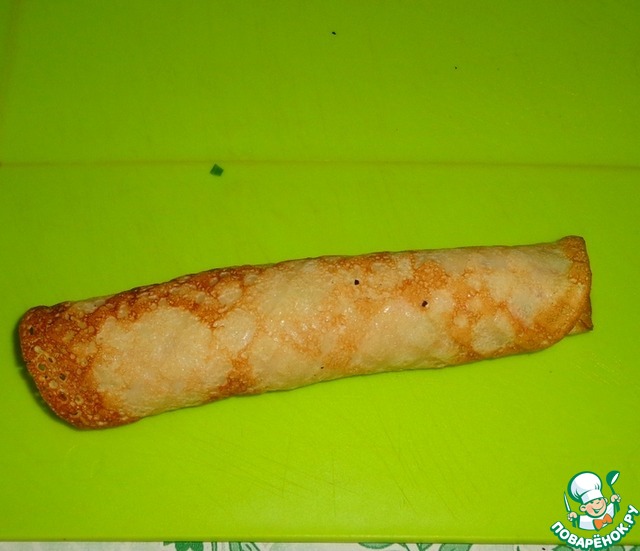 Сворачиваем в рулетик. Рулетики порезать на несколько частей и подать к столу. Очень вкусно с супом!