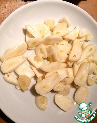 Нарежьте чеснок. Количество можно менять, но его присутствие просто необходимо.