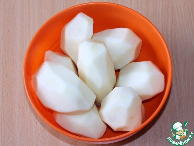 1. Приготовить тесто для блинчиков. Очистить картофель, промыть