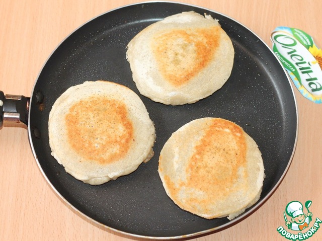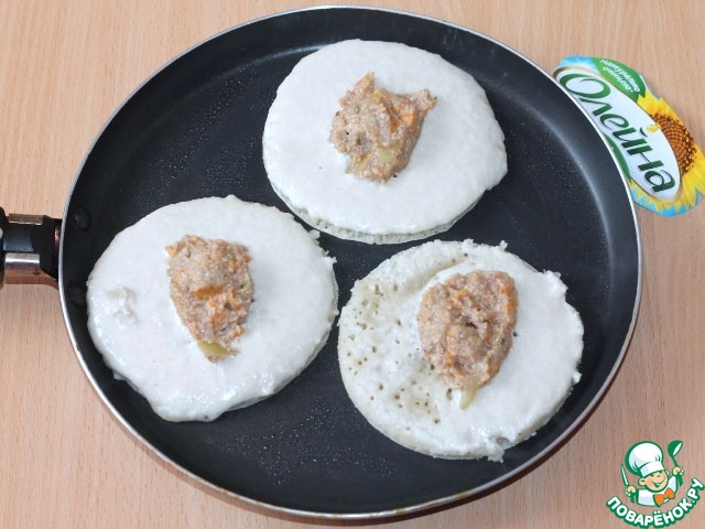 8. и закрываем тестом (1-2 ст. л.). Переворачиваем блинчики и выпекаем с другой стороны до золотистой корочки.