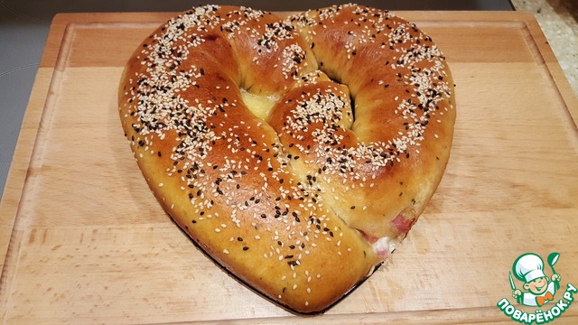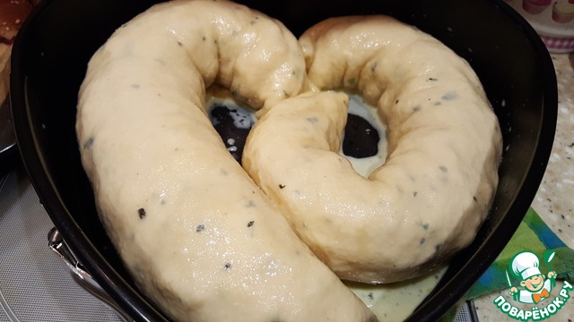 Выкладываем а любую удобную форму, смазанную сливочным маслом или застеленную бумагой для выпечки. Я решила выложить в разъёмную форму - сердце. Включаем разогрев духовки на 180*
