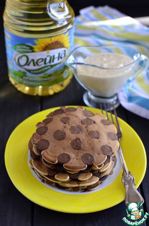 Блинчики в горошек с соусом "Коровка"