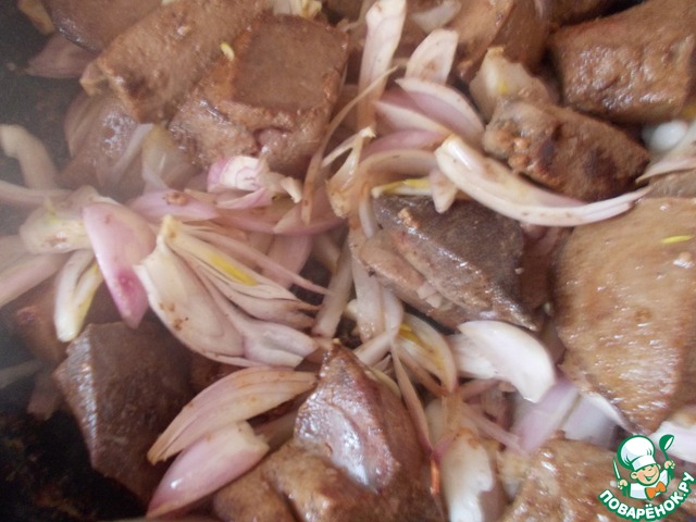 Печень крупно порезать и залить молоком, оставить на пол часа, можно больше. Таким образом, из печени уходит вся горечь.
