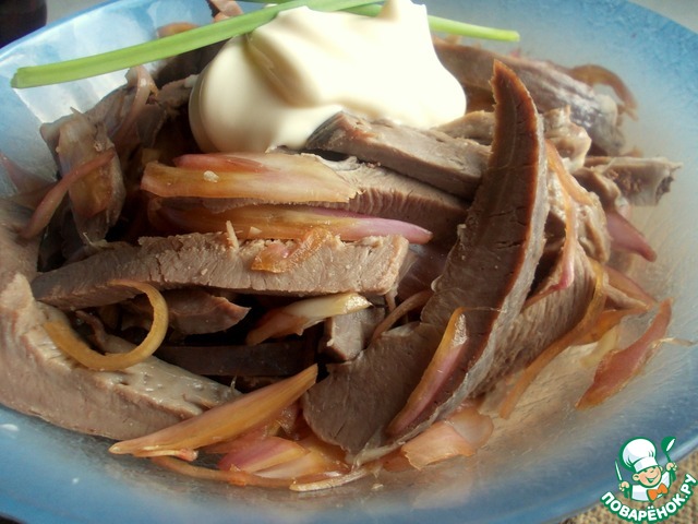 | Очень вкусный, закусочный салат с сердцем и большим кол-вом лука. Готовится очень легко и быстро, ингредиентов мало, поэтому можно его отнести еще и к дюбжетным рецептам. Угощайтесь, не пожалеете! |