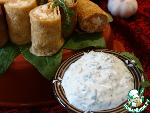 | Цацики. Очень вкусный соус на натуральном йогурте с пикантным вкусом. Подходит к блинчикам с несладкой начинкой, в частности к блинчикам по моему рецепту: http://www.p ovarenok.ru/recipes/ show/122441/ |
