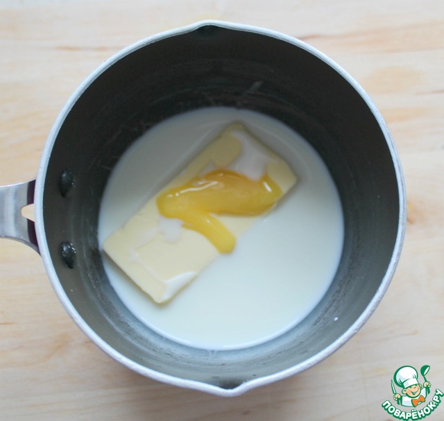 В сотейник влить молоко, мед, коньяк и сливочное масло, поставить на огонь и нагреть до полного растворения - не кипятить!