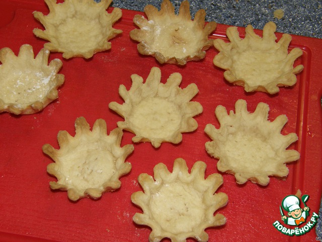 Раскатываем тонко тесто и формочкой для кексиков вырезаем вот такие волнистые кружочки.