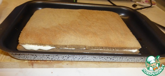 10. Кладем следующий корж. И повторяем процедуру: пропитываем кофе так, чтобы корж полностью стал влажным.