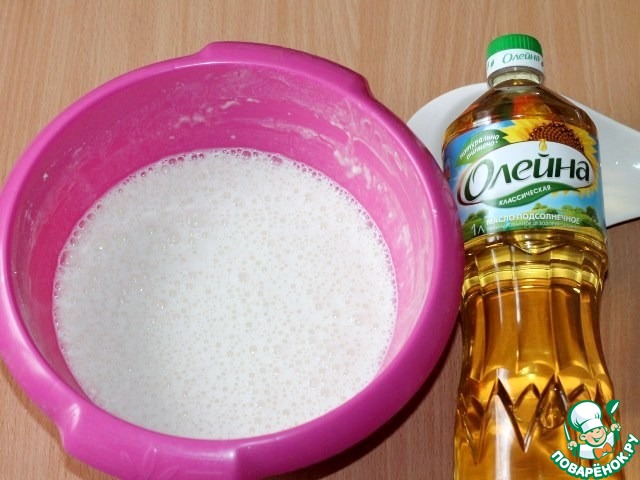 В большую миску вбиваем 2 куриных яица и взбиваем с щепоткой соли до пышности. Добавляем к яйцам молоко, сметану, масло, сахар и соду гашеную в сметане. Смешиваем ингредиенты до однородности и начинаем вводить частями просеянную пшеничную муку, замешивая жидкое тесто без комков.