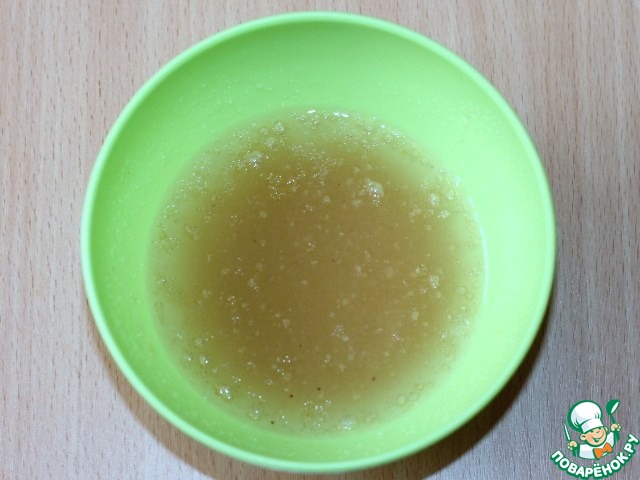 10. разогретый желатин, перемешиваем и взбиваем смесь блендером. Смесь должна быть блестящей, без пузырьков. Даем глазури немного остыть.