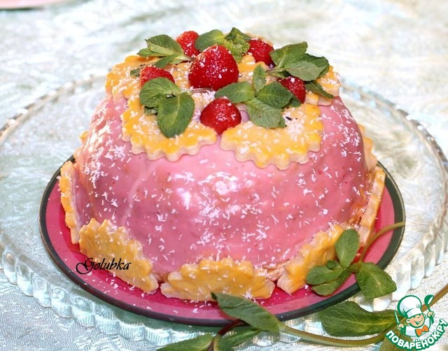 14. А также, я украсила верх торта клубникой, листочками мяты и посыпала кокосовой стружкой.