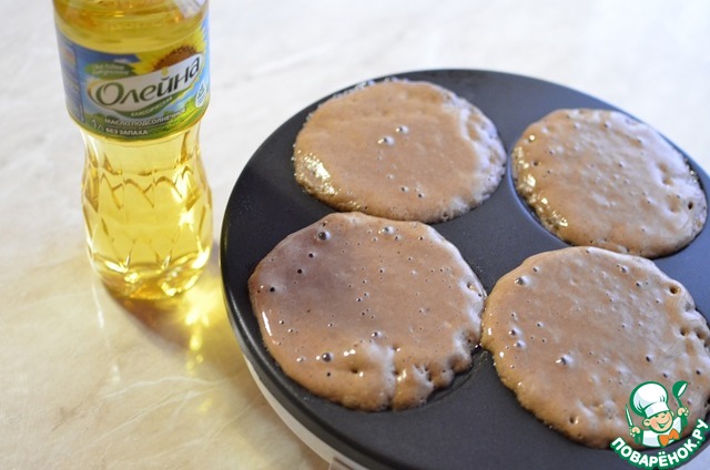На подсолнечном масле "Олейна" выпекаем по любому удачному рецепту шоколадные панкейки или толстые блинчики.