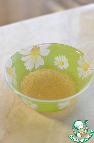 Желатин залить холодной кипяченой водой и оставить для набухания.