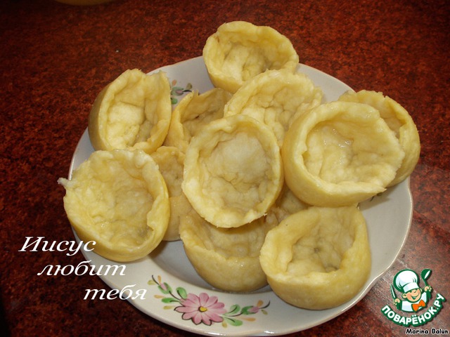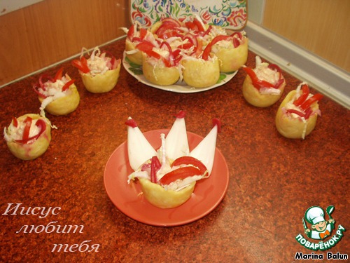 И еще один нюанс: желательно готовить в день или за день до фуршета, так как долгое хранение сделает сами корзиночки жесткими.