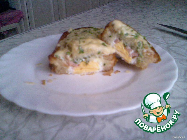 Отправляем в микроволновку на 40-50 секунд (до разогревания сыра - чтобы расплавился). То же самое можно проделывать с батоном. Рекомендую есть не остывшим! Разрезаем и...