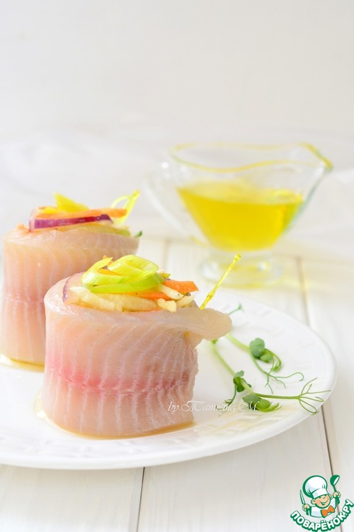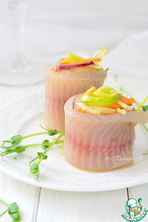 | Закуска родилась экспромтом, когда увидела и купила аккуратное филе тилапии... решила приготовить из нее вкусную и полезную закуску с сырыми овощами, предварительно замариновав эту рыбку! Получилась очень вкусная порционная закуска для любителей пряной соленой рыбки и овощей, легкая и аккуратная - попробуйте и вы! |