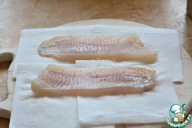 Рыбку вынуть из рассола, подсушить на бумажных полотенцах;