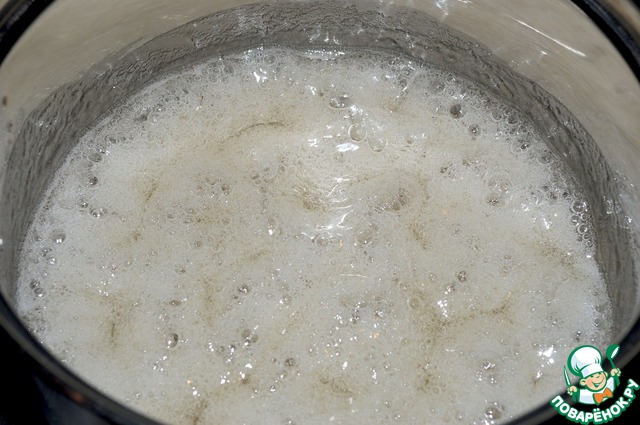 Агар вылить в кастрюлю и поставить на огонь. Довести до кипения и постоянно помешивая всыпать сахар и варить минут 5-7. Горячий агар-агар влить в нутовый отвар не прекращая взбивать.