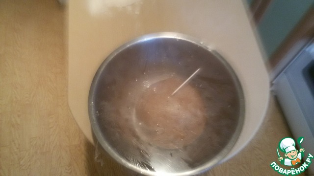 Кладем тесто в большую ёмкость предварительно смазанную растительным маслом. Накрываем пищевой пленкой, в которой делаем несколько дырочек, чтобы тесто дышало. Ставим в теплое место на 1-1,5 часа. После того, как тесто подойдет и увеличится в объеме примерно в 2 раза, обминаем и ставим еще на 30 минут.