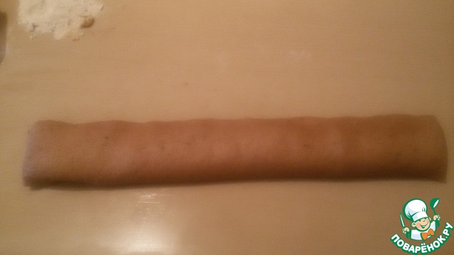 Поднявшееся тесто делим на 14-15 частей. Для удобства я сначала делаю колбаску.