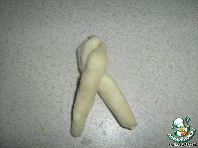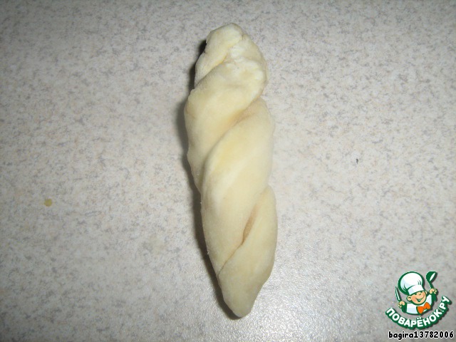 Скрепляем концы и начинаем переплетать колбаски в косичку.