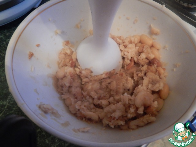 Фасоль перемалываем блендером, добавляя воду.