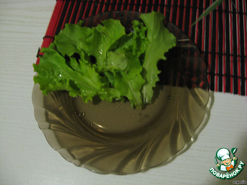 На тарелку выкладываем листья салата (30 секунд)