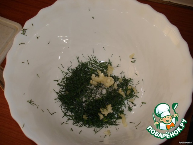 Мелко порезала укроп, выдавила туда пару долек чеснока.