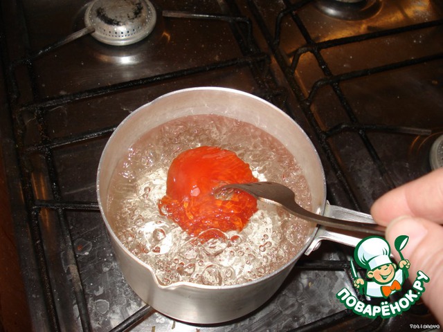 Почистила помидор - опустив сначала в кипяток.