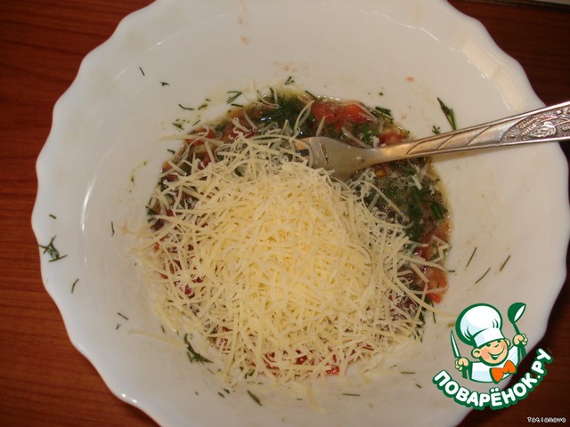 Потереть немного сыра и все хорошенько перемешать.