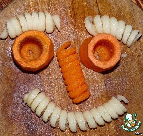 При подаче украшаем фасолью и кубиками отварной мАркошки.
