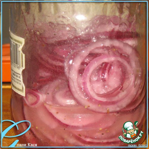 Лук порезать кольцами, замариновать - я обдала его кипятком, сложила в банку, туда соль, сахар, масло подсолнечное, немного уксуса. Встряхнуть. Поставить в холодильник.