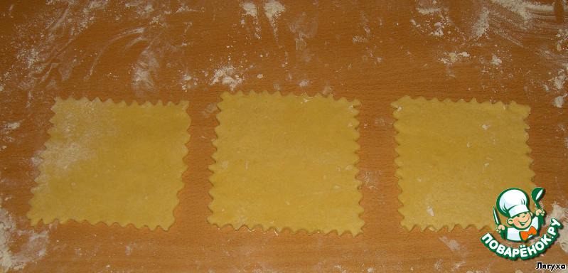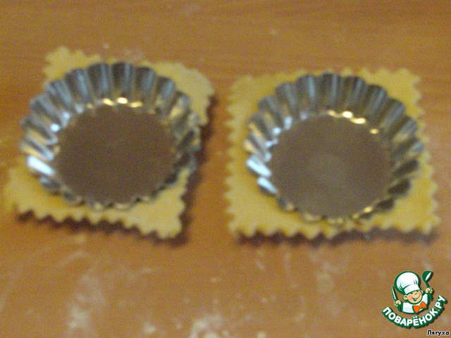 Выкладываем квадрат из теста в формочку, дно протыкаем в нескольких местах вилкой, и сверху прижимаем другой формочкой.