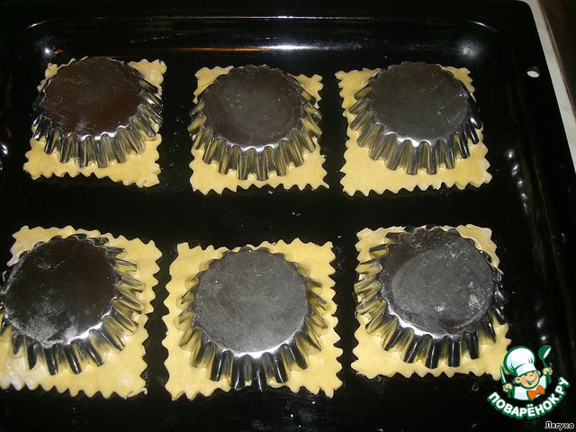 Выкладываем формочки на противень "вверх ногами". Выпекаем в разогретой до 220-230С духовке приблизительно 20 минут.