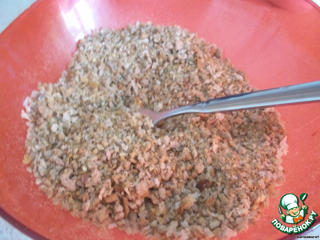 Смолоть в блендере черствый хлебушек в мелкую крошку.