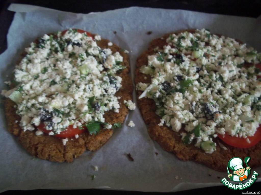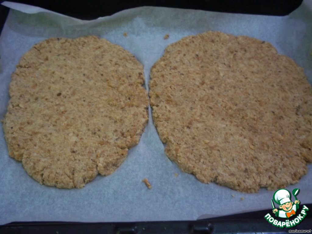 Сверху укладываем начинку и слегка прижимаем. Ставим в духовку на 7 минут.