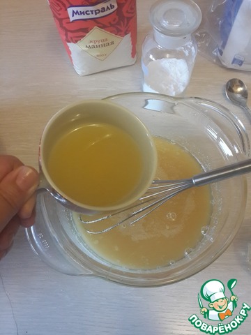 Через 10 минут вливаем в тесто масло. Это может быть как растительное масло, так и растопленное сливочное или маргарин