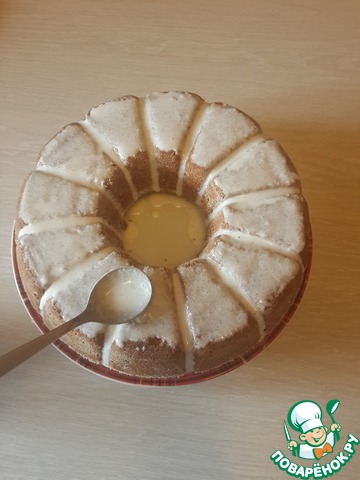 Можно посыпать сахарной пудрой или покрыть глазурью. У меня оставалась белковая глазурь - я использовала её
