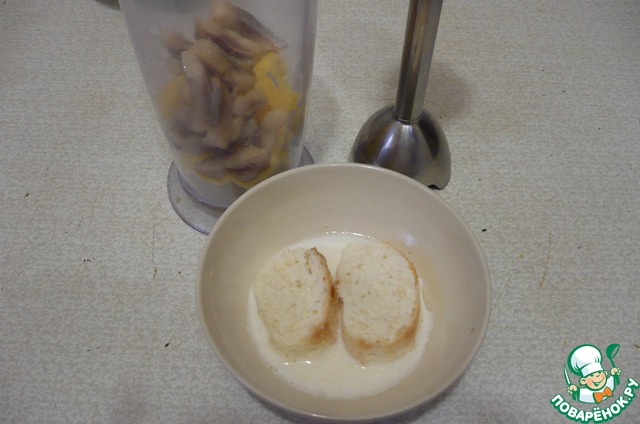 У ломтиков батона удалить корки и замочить в молоке на 2-3 мин. Затем отжать. Рыбу, сыр, масло и зелень положить в блендер. Добавить булку и все измельчить до состояния крема. Начинка готова, перекладываем в тару и убираем в холод.