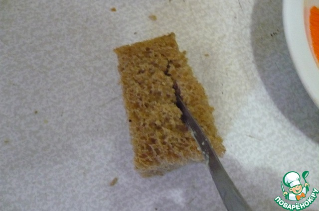 Теперь займемся нашим хлебушком и будем делать из него корзинки. Для начала обрежем все корки.