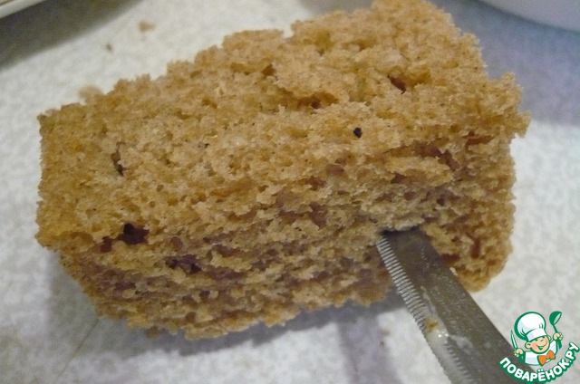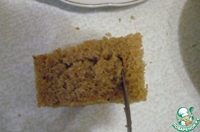 Разрежем его на прямоугольники. Я делала небольшие, чтобы на 2-3 укуса. Теперь, отступив от края, делаем продольный разрез, не доходя до края.